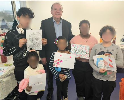 Les enfants vainqueurs du concours de dessins pour la carte de voeux 2025 et Patrick Beau, Président de l’association :